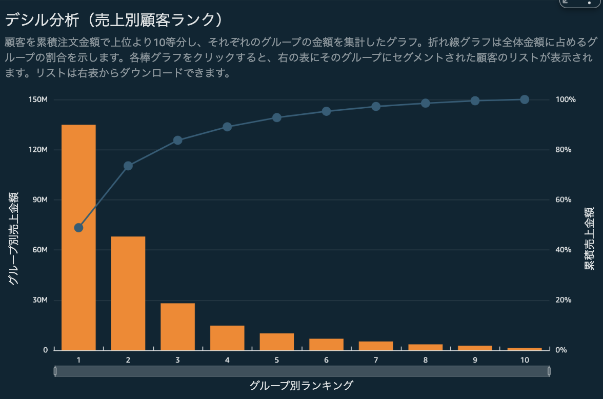 ステータスや累積購買金額ランクなどを利用して、顧客リストのダウンロードができます。