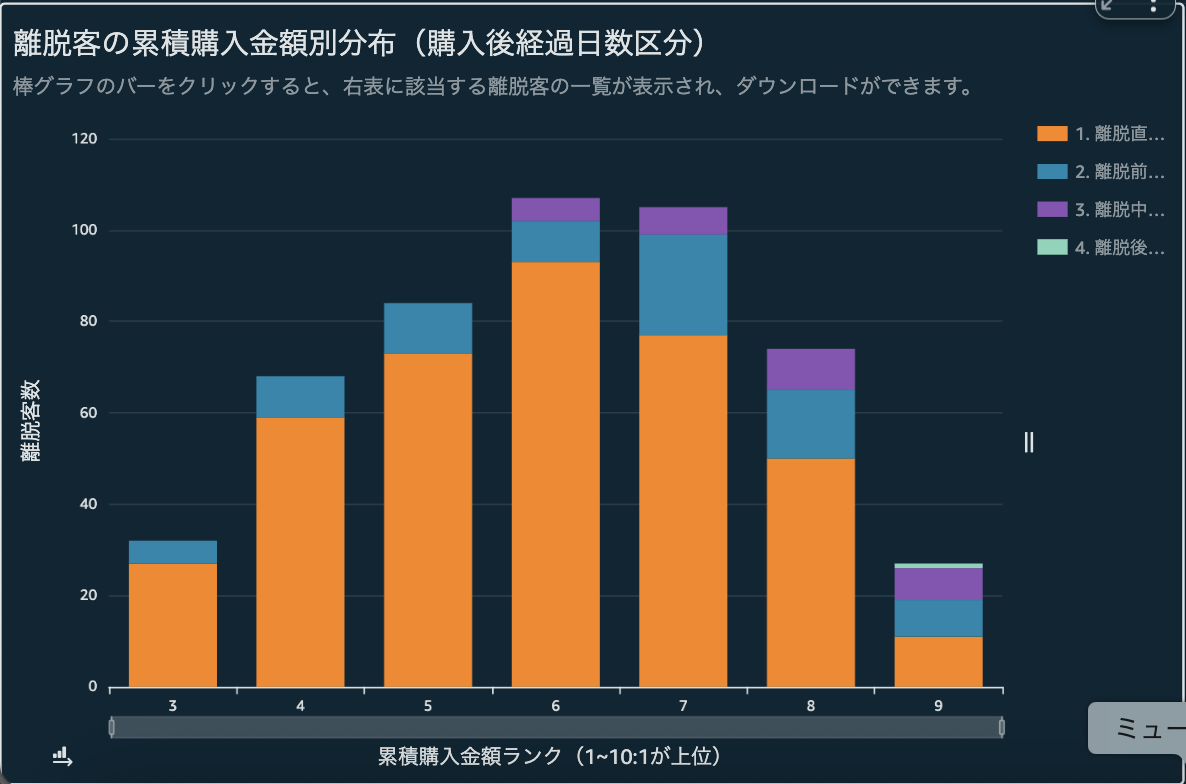 離脱客を分析して再購入を導くための的確なターゲットを抽出します。