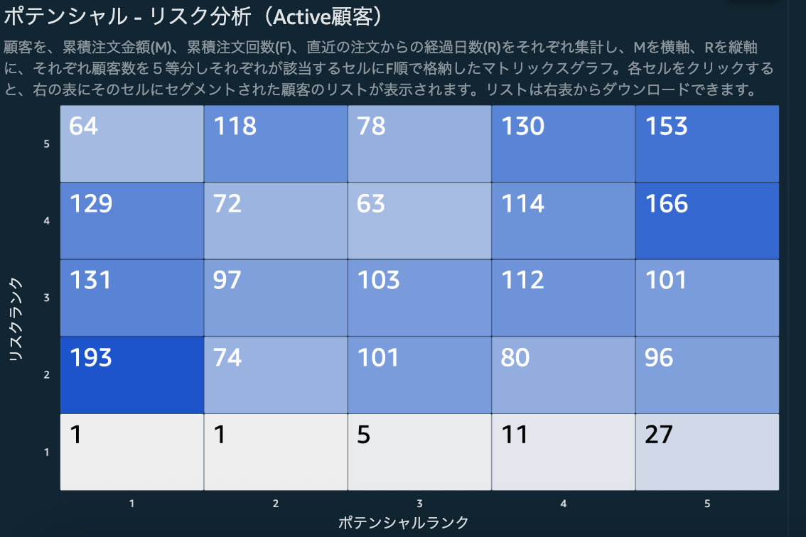 ステータス、RMFの各指標などを選んで顧客リストがダウンロードできます。