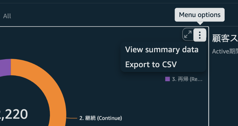 ダウンロードするには、グラフにカーソルを合わせるとメニューが現れますので、「Export to Csv」を選択するだけです。